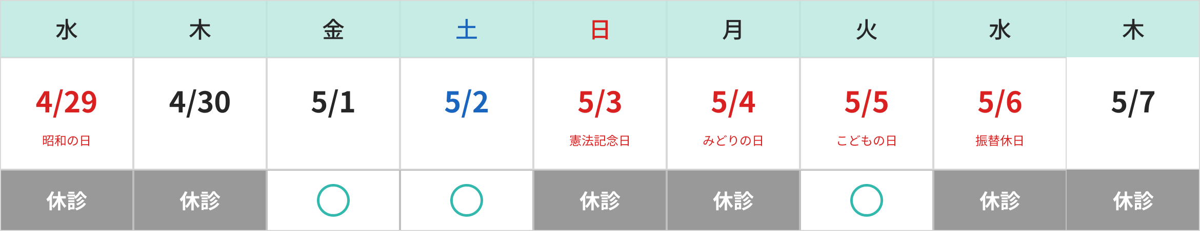 GW診療日のお知らせ